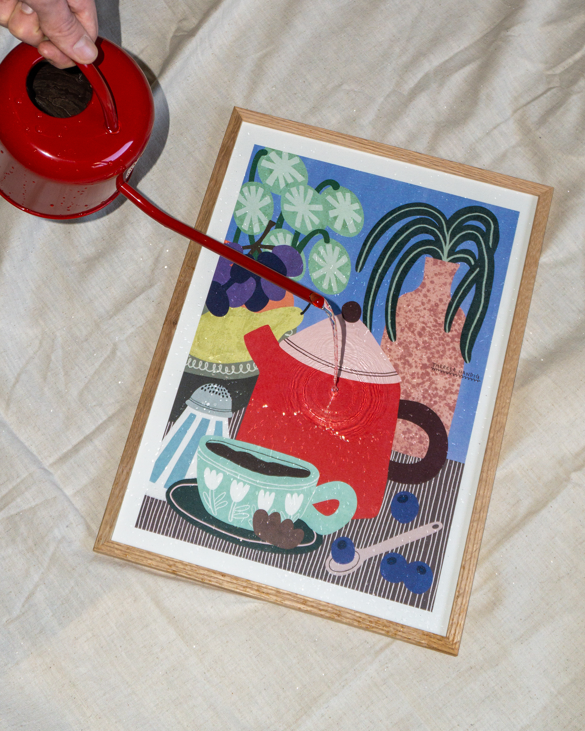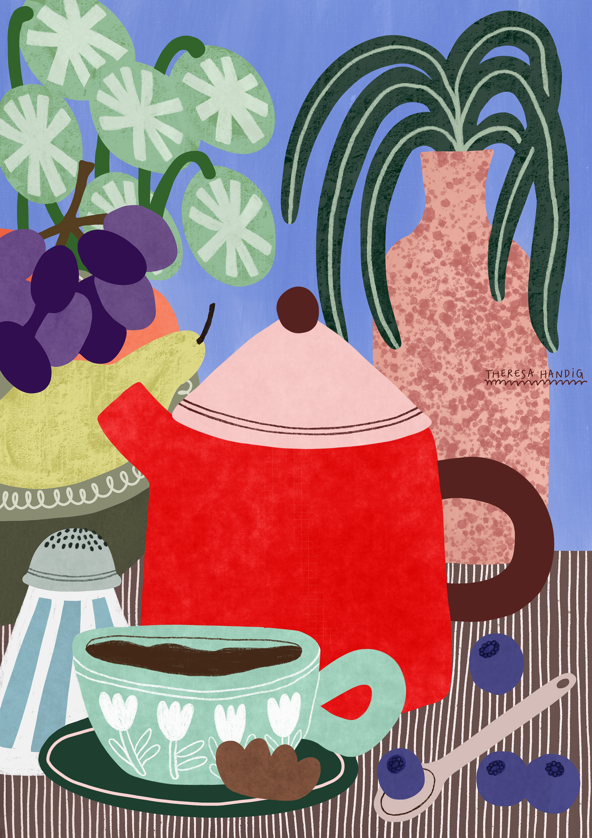 The illustration La Teiera depicts everyday scenes with small, vibrant details.